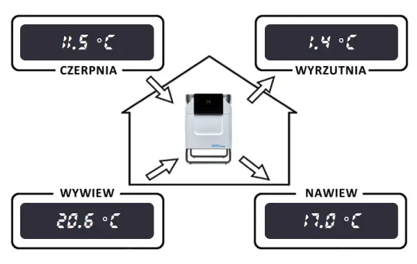 Następnie powietrze to jest nawiewane do budynku do pomieszczeń takich jak salon, sypialnia czy gabinet.