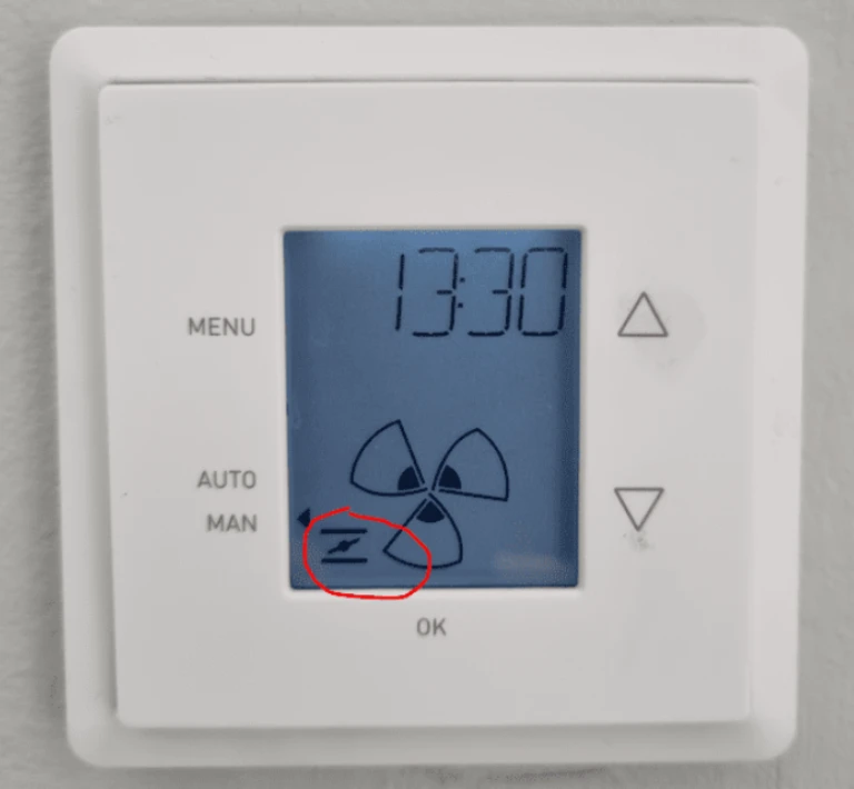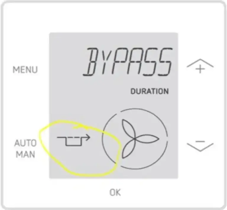 Większość sterowników rekuperatora sygnalizuje aktywację bypassu ikoną.
