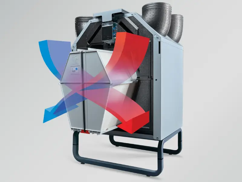 Sercem systemu jest rekuperator. Jest on wyposażony m.in. w elektronikę, wymiennik ciepła i wentylatory, które nadają właściwe kierunki przepływu powietrza. W wymienniku , przez który przechodzą dwa strumienie powietrza, tj. nawiewny i wywiewny, odbywa się odzysk energii. Strumienie wywiewany i nawiewany w nie mieszają się ze sobą, a jedynie mijają w blisko ze sobą sąsiadujących, specjalnie zaprojektowanych kanalikach.