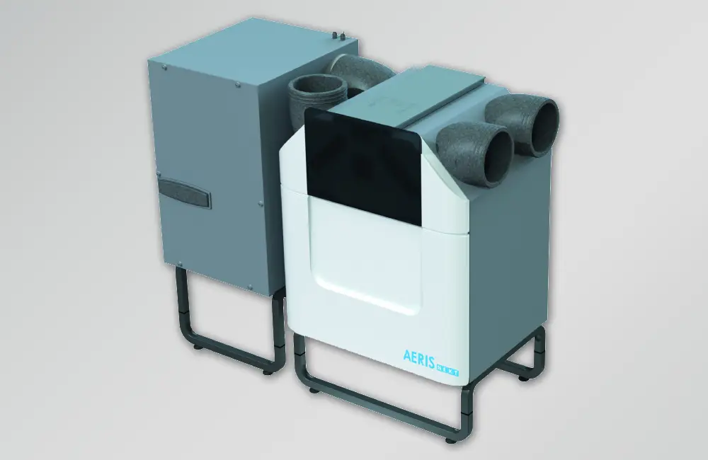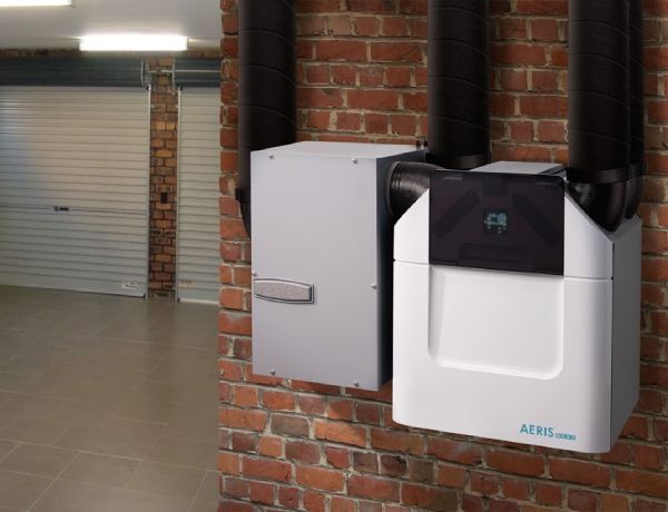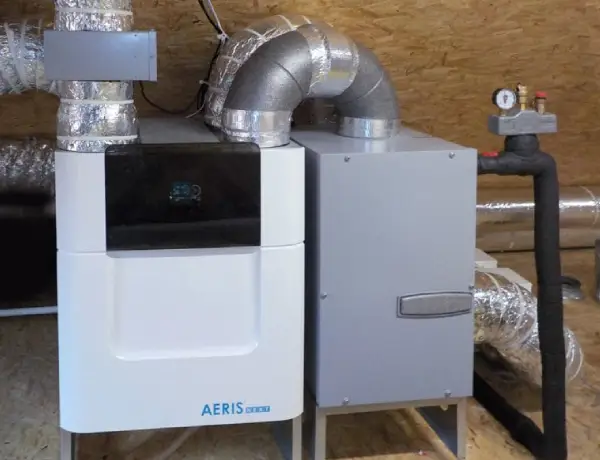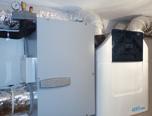 Gruntowy wymiennik ciepła rekuperacja: Zamontowany gruntowy wymiennik ciepła (z prawej) z rekuperatorem AERISnext 600 (z lewej).