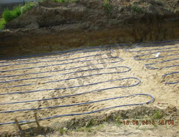 Rozłożona zewnętrzna instalacja gruntowego wymiennika ciepła.
