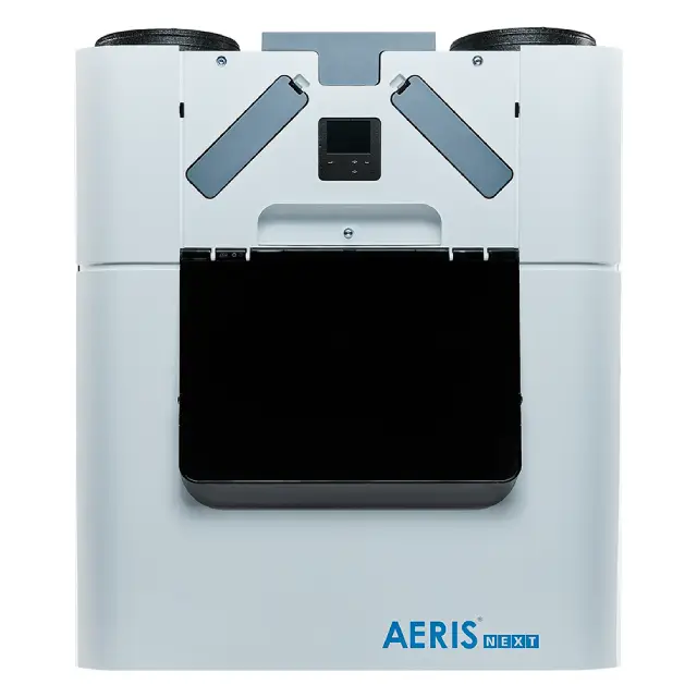 Średni roczny koszt zużycia prądu dla rekuperatora AERISnext, w zależności od rodzaju wymiennika i mocy urządzenia, wynosi od 165 do 625,3 [kWh/rok].