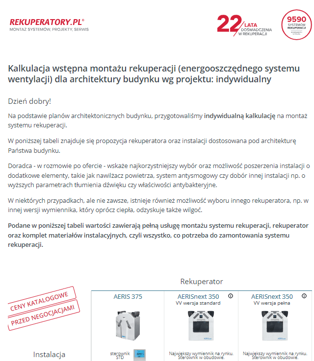 Rzetelna kalkulacja na montaż rekuperacjiZamów zupełnie niezobowiązującą rozmowę z doradcą