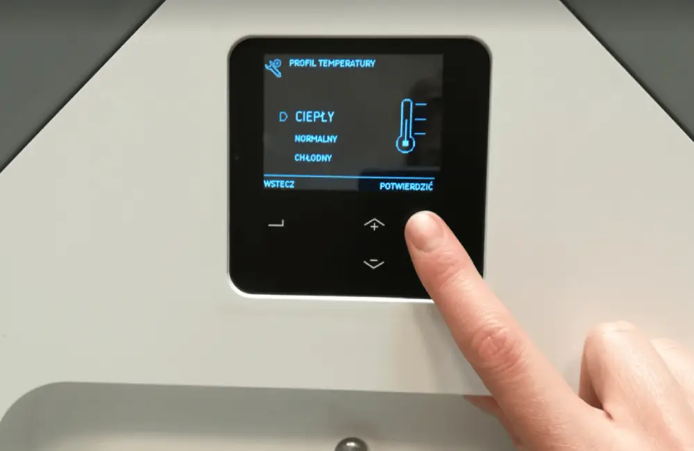 | zmień profil temperatury na „normalny”. Jak tylko na zewnątrz zrobi się gorąco, włacz profil „chłodny”. Wykonasz to na wyświetlaczu znajdującym się na obudowie rekuperatora w MENU -> ZADANIA -> PROFIL TEMP. | |