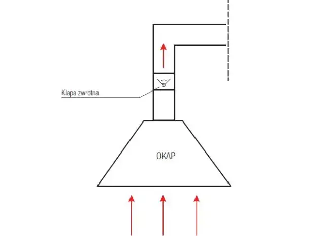 Rekomendujemy zamontowanie okapu kuchennego (oprócz tego oczywiście kuchnia także będzie wentylowana mechanicznie). Okap musi posiadać klapę zwrotną oraz wyrzucać powietrze znad kuchenki niezależnym przewodem na zewnątrz budynku.