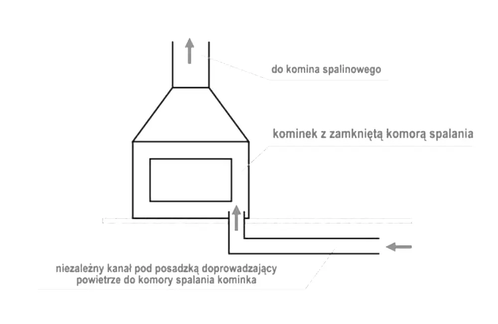 Zarówno koza, jak i kominek powinien posiadać zamkniętą komorę spalania i doprowadzenie powietrza do spalania niezależnym przewodem z zewnątrz. Oprócz tego powinien zostać zbudowany komin spalinowy do odprowadzenia spalin.