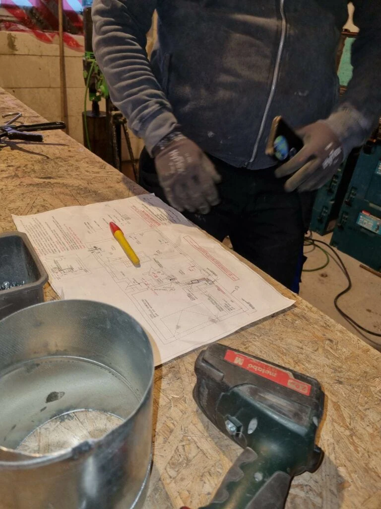 Parametry montażu systemu rekuperacji muszą zgadzać się z projektem inż. Marty Opałki, która jest odpowiedzialna za przygotowanie montażu od strony inżynierskiej. Jej czujnemu oku nie umknie żaden szczegół, także kierownik ekipy instalacyjnej śledzi wytyczne na papierze.