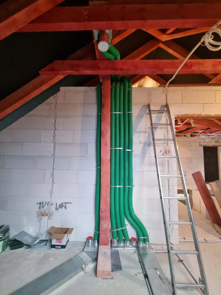 Właśnie zakończyliśmy w nim montaż instalacji systemu rekuperacji.