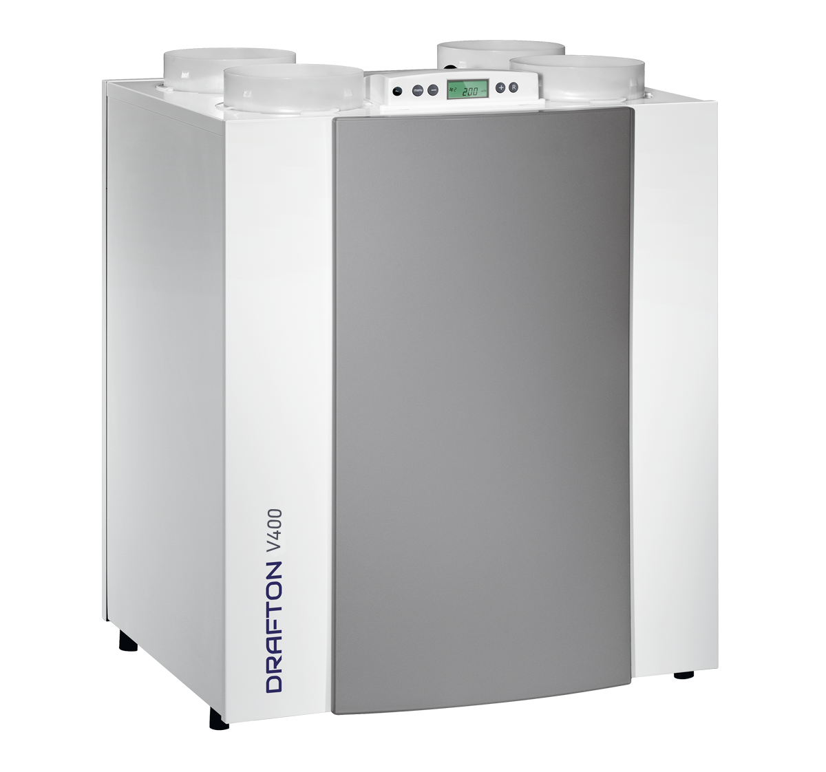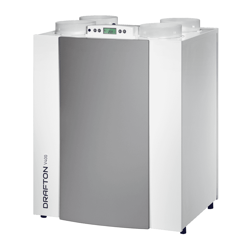 To rekuperator przeznaczony do montażu pionowego, ściennego lub stojącego na podstawie, dostępny w wersji prawej i lewej. Standardowo DRAFTON V400 pracuje na filtrach G3/G3, z możliwością zastosowania filtracji F7/G3, a dodatkowo może być wyposażony w wymiennik entalpiczny. W praktyce jest to rozwiązanie dla osób, które chcą dobrze dobrać centralę wentylacyjną do budynku już na starcie, a jednocześnie zostawić sobie możliwość późniejszego rozszerzenia funkcji w wersji V+.