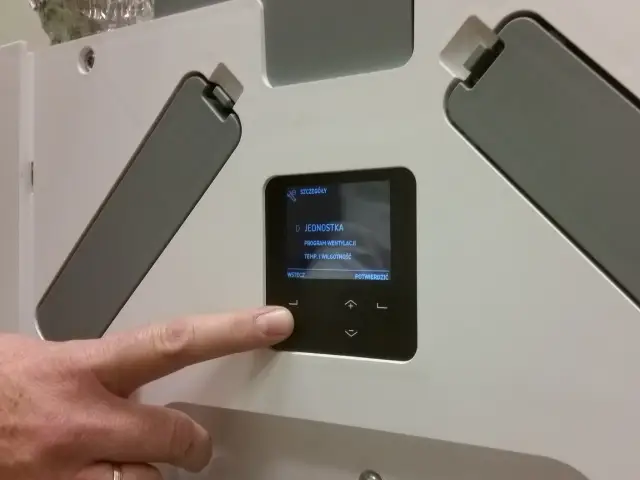 Na zdjęciu sterowanie rekuperatorem AERISnext na wyświetlaczu.