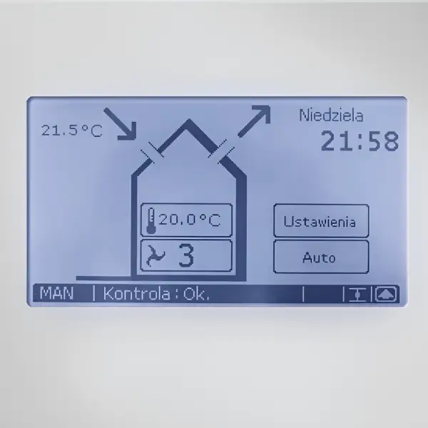 Za pomocą sterowników ustawić można trzy stopnie regulacji wydajności pracy rekuperatora: