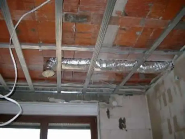 Fot. 1: rekuperacja w suficie podwieszaonym – przewód wentylacyjny ukryty w suficie podwieszanym (widoczna konstrukcja sufitu)