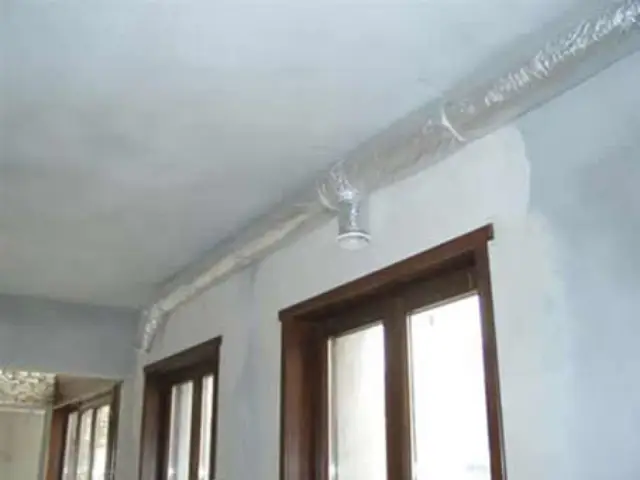 Fot. 5: Umocowanie przewodu wentylacyjnego bardzo blisko istniejącego komina. Później zostanie to zabudowane.