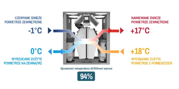 Dzieje się tak, ponieważ rekuperator odzyskuje ciepło z powietrza wywiewanego na zewnątrz i wykorzystuje je do ogrzewania świeżego powietrza napływającego do wnętrza, minimalizując w ten sposób straty energii cieplnej. Taka optymalizacja procesu wymiany powietrza pozwala na utrzymanie stałej, komfortowej temperatury w pomieszczeniach bez konieczności nadmiernego grzania, co jest szczególnie ważne w chłodniejsze miesiące.
