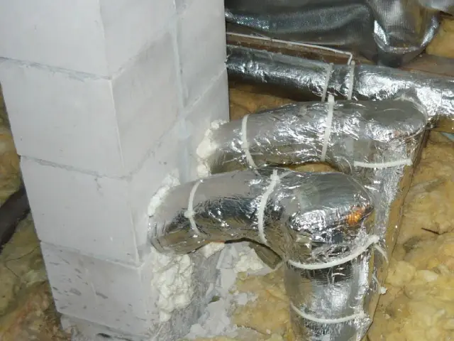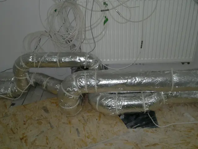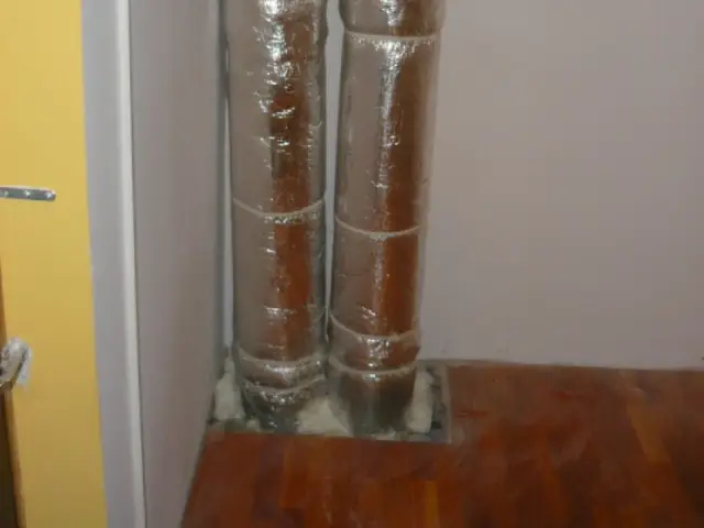 Kanały tradycyjne izolowane stalowe zamontowane w domu istniejącym: kanały wentylacyjne zostały ukryte w bruździe ściennej.